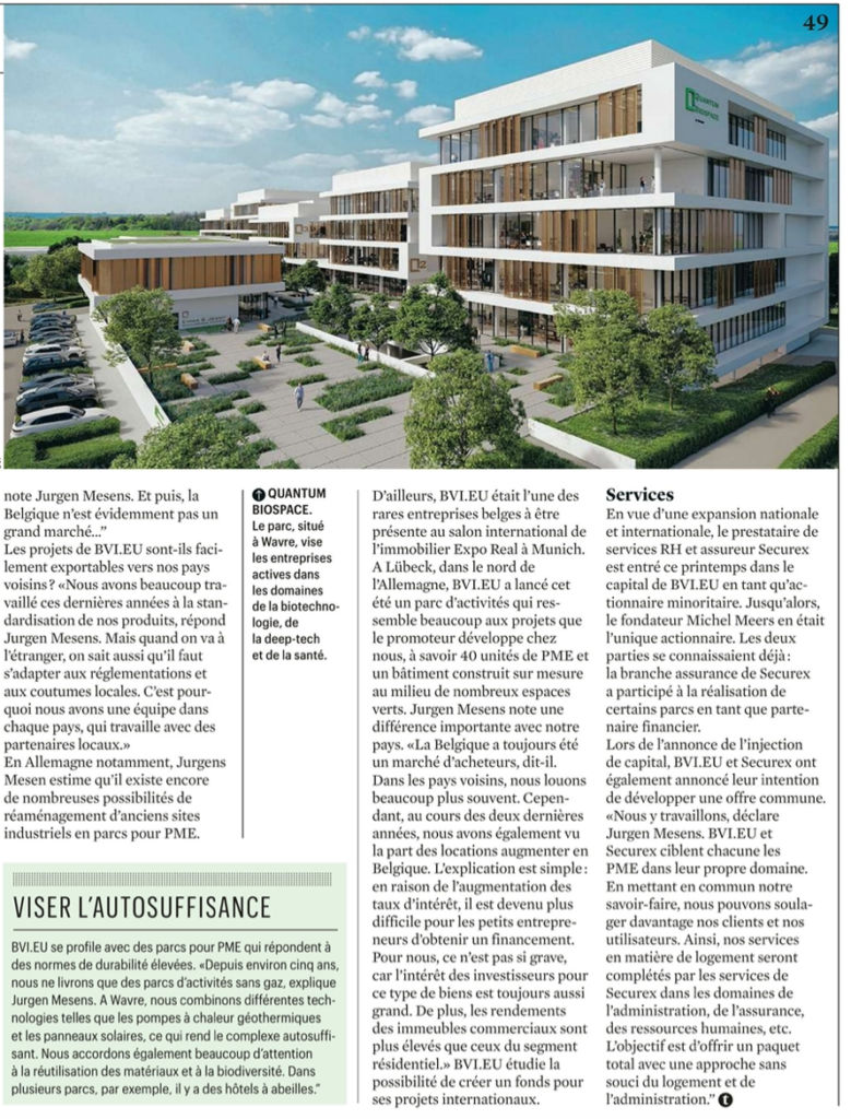 En vue d’une expansion nationale et internationale, le prestataire de services RH et assureur Securex est entré ce printemps dans le capital de BVI.EU en tant qu’actionnaire minoritaire. Jusqu’alors, le fondateur Michel Meers en était unique actionnaire. Les deux parties se connaissaient déjà : la branche assurance de Securex a participé à la réalisation de certains parcs en tant que partenaire financier.